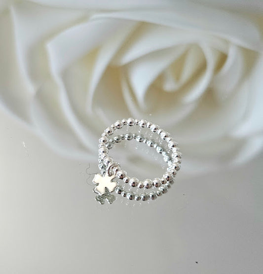 Silver ring with pearls and lucky clover | MALI