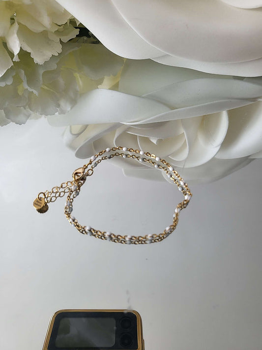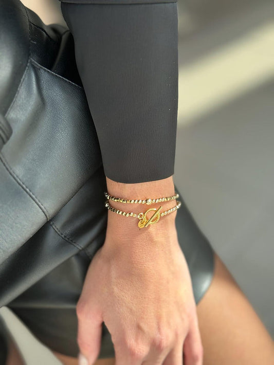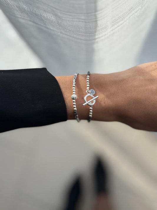 From thin bracelets to wear in several rows, in brass or silver to semi-precious pearl bracelets, perfect for dressing up an outfit.