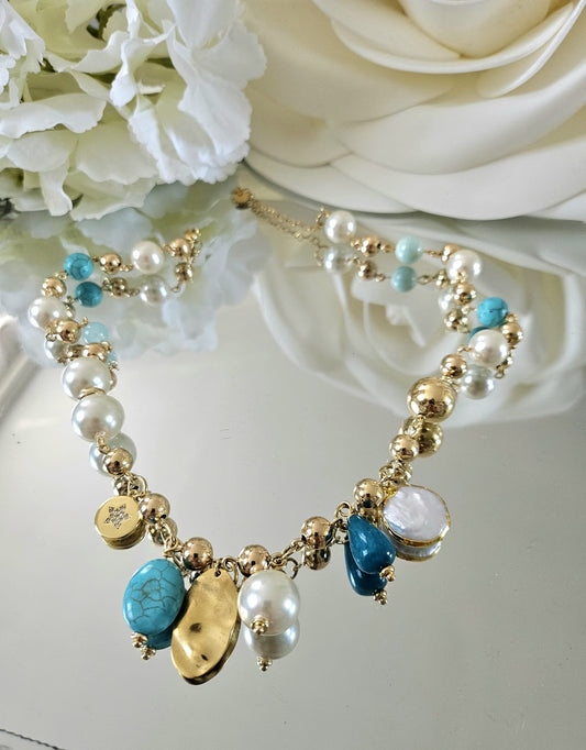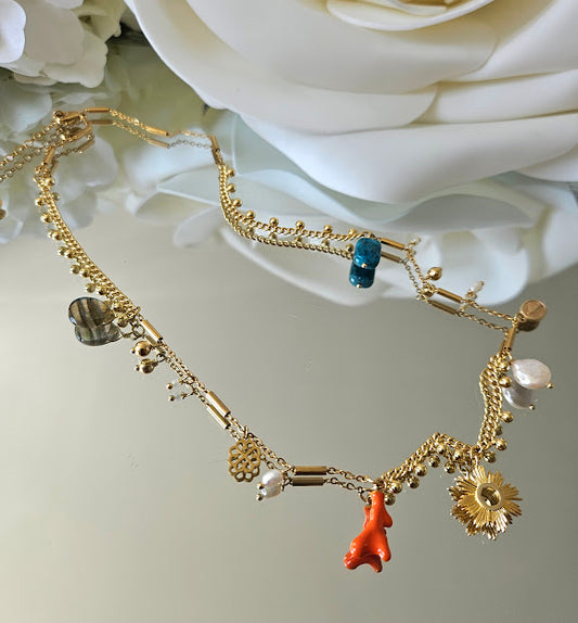 Diverse range of necklaces for all tastes in silver, brass, gold plated and silver plated and married with semi-precious stones, glass and ...