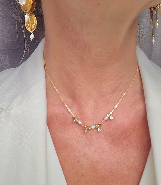 Mother-of-pearl and gold-plated fone necklace